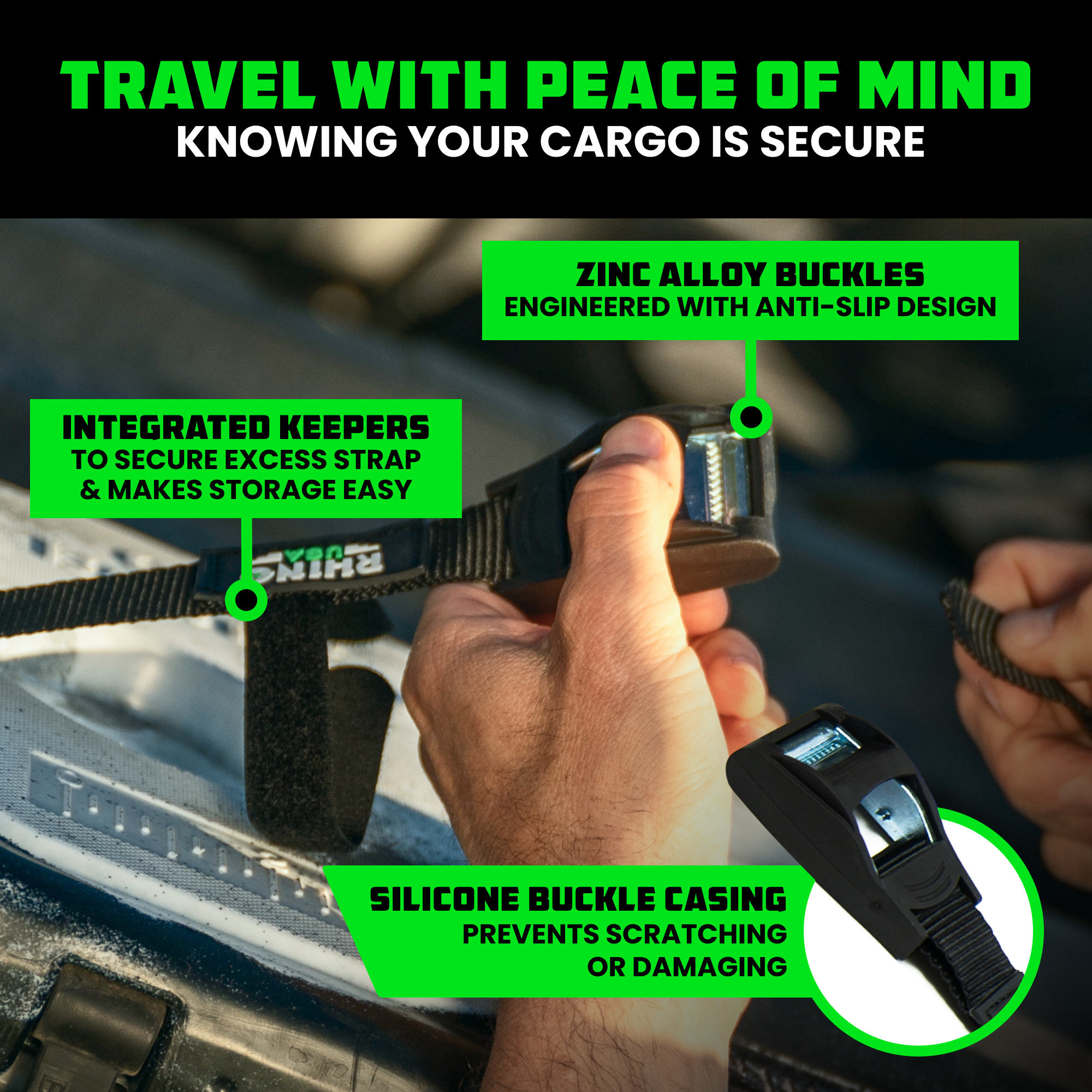 - THE ULTIMATE LASHING STRAP - Zinc Alloy Buckle in Silicone Housing with Integrated Hook & Loop Fastener