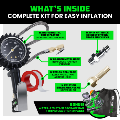 - Analog TIRE INFLATOR WITH PRESSURE GAUGE (0-100 PSI) - ANSI B40.1 Accurate, Large 2" Easy Read Glow Dial, Premium Braided Hose, Solid Brass