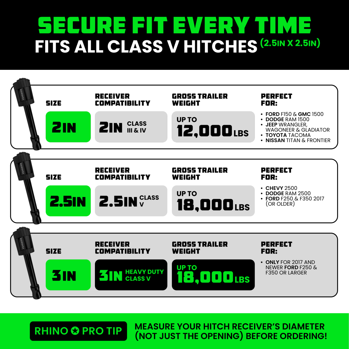 - COMMON HITCH SIZES - Our Unique Trailer Hitch Lock Fits all Class III, IV, V Hitches (2.5" x 2.5") With Ease. NOTE: Will not work with newer 3" hitches.