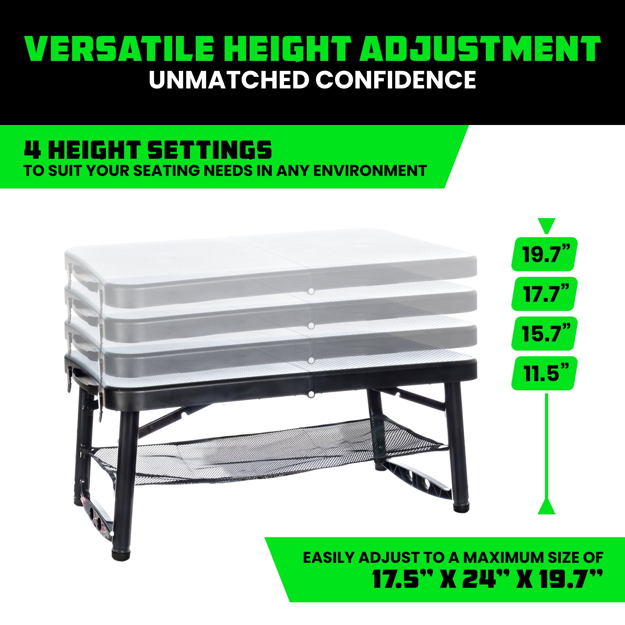 VARIABLE HEIGHT – EZ push button adjustment mechanism lends additional versatility, allowing users to tailor the setup to their needs.