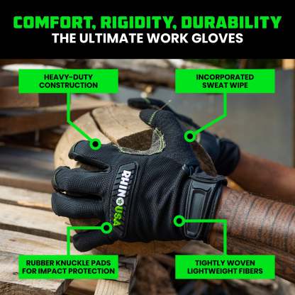 - ULTIMATE WORKING GLOVES - Improved Palm Grip, Sweat Wipe, Kevlar Reinforcement & More!