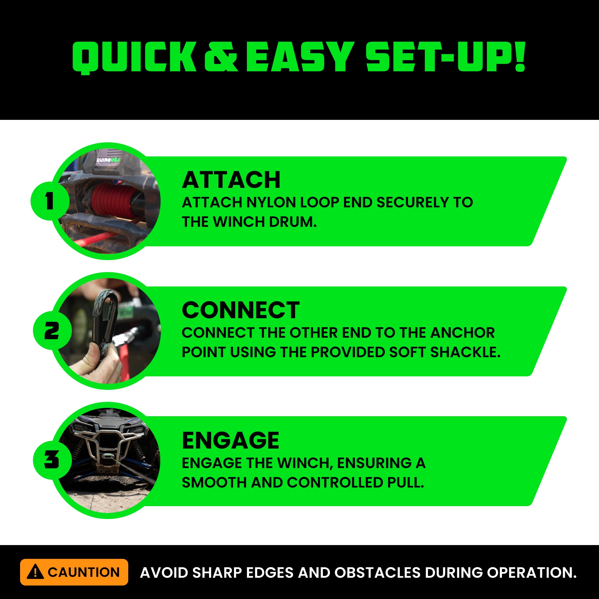 - BUILT FOR TOUGH OFF-ROAD CONDITIONS - High Strength UHWMPE fibers and integrated protective sleeve are designed for use on the roughest trails.