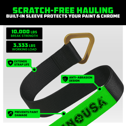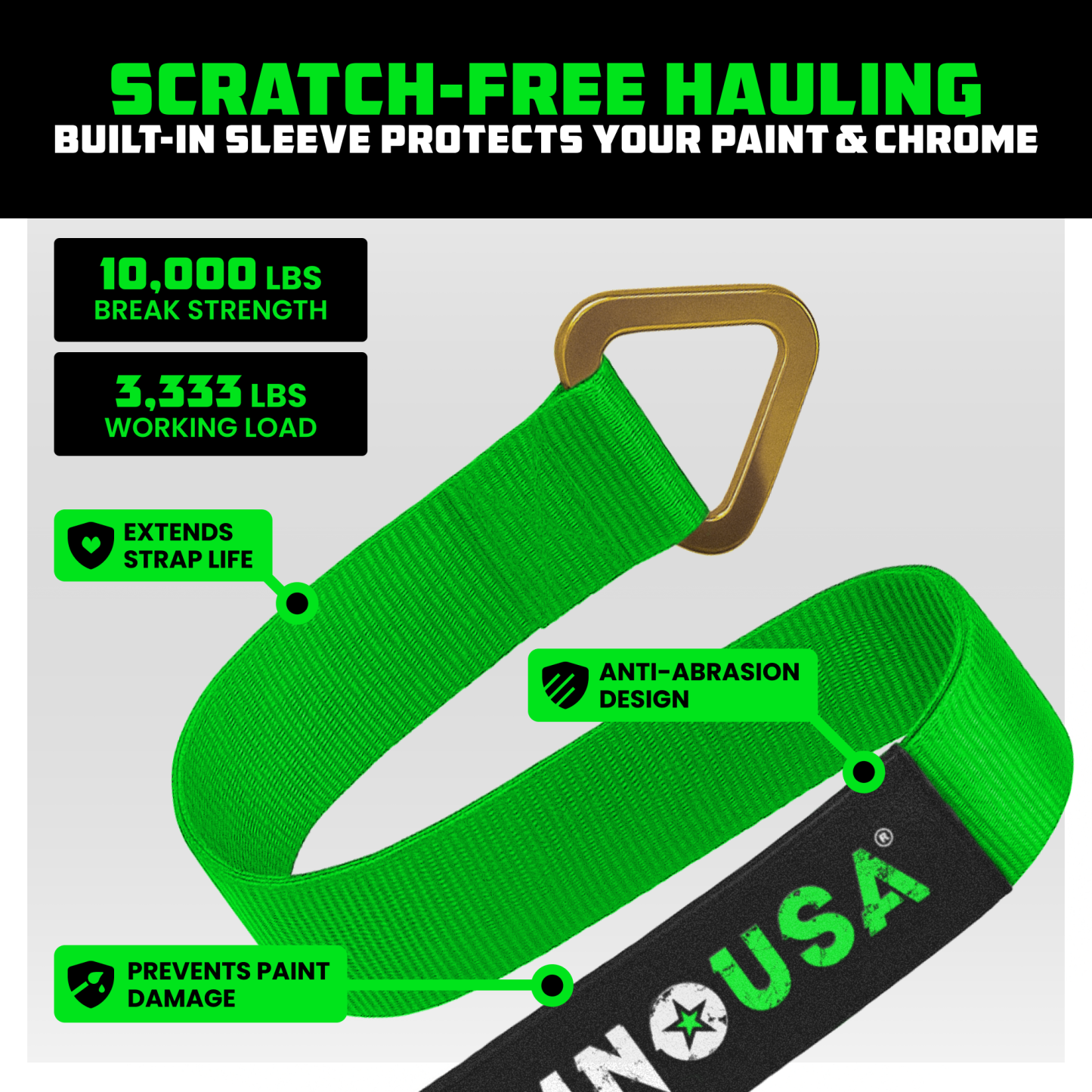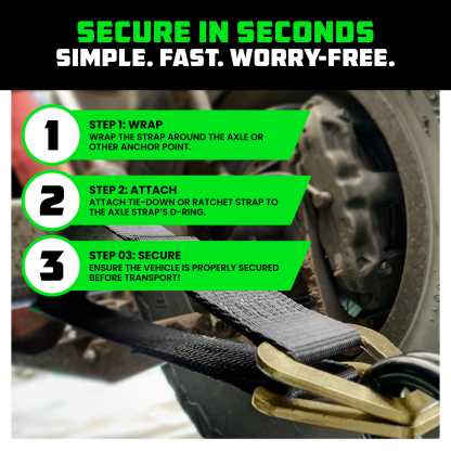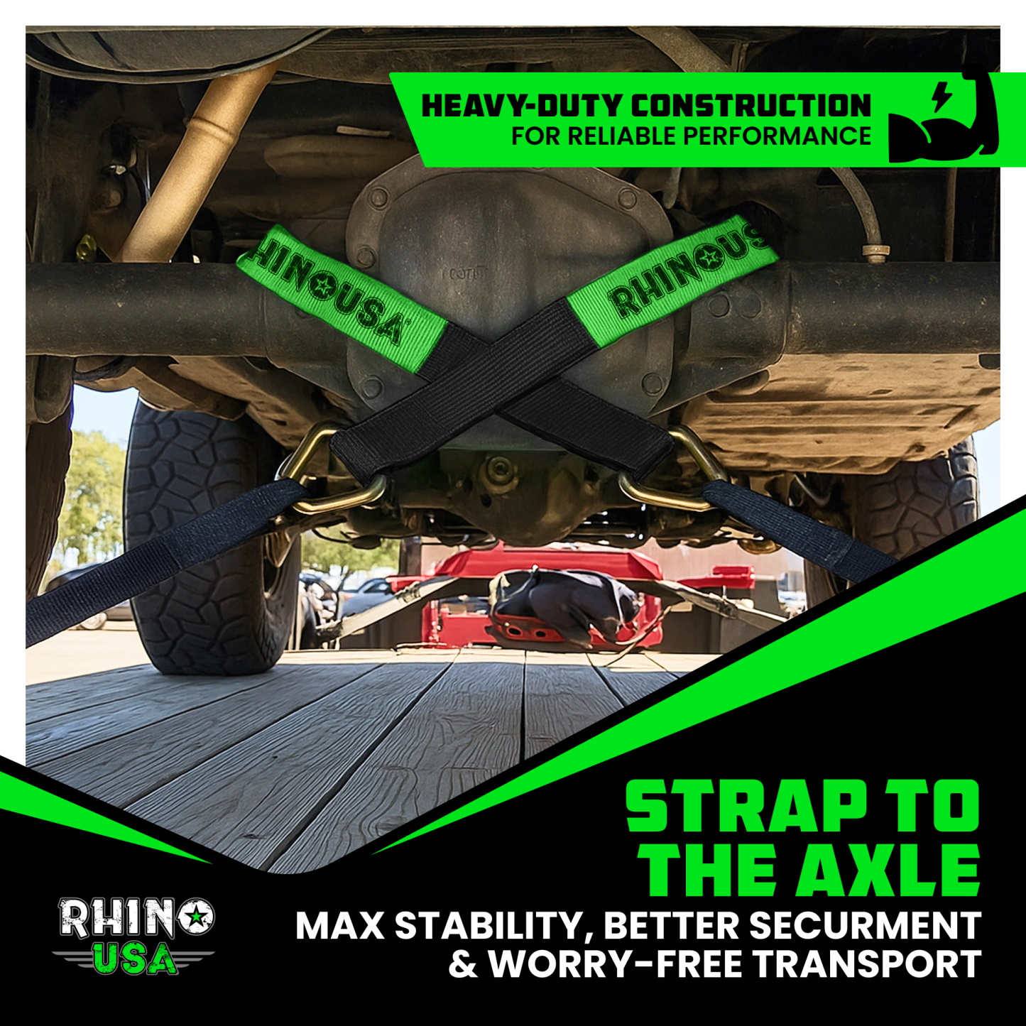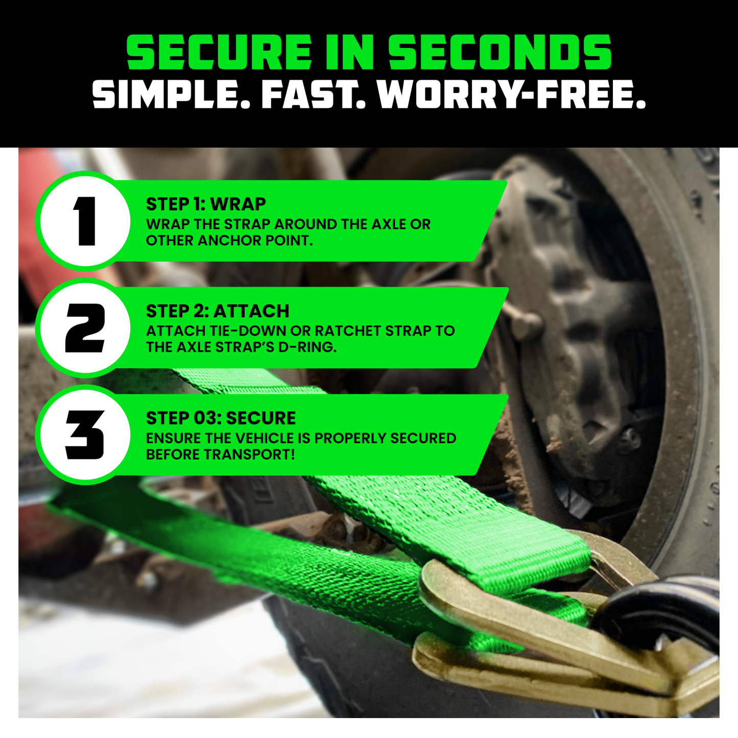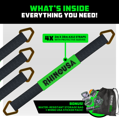- AXLE TIE DOWN STRAPS (4-PACK) 2" X 38" - Lab Tested 11,128lb. Break Strength - Heavy Duty Protective Sleeves & D Rings to Ensure Peace of Mind - Used for Car, Truck, Trailer, UTV & More!